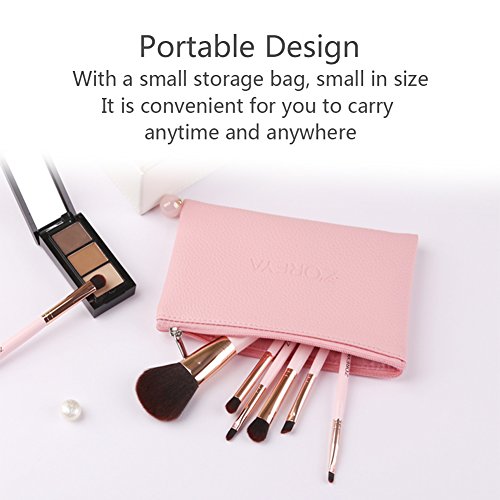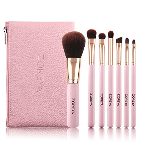 HaloVa Makeup Brush Set, Eye Shadow Powder Foundation BB Cream Blush Eyebrow Makeup Tool Set, Durable Soft Water-proof Strong Powder-catching Makeup Brushes, 1 Set of 7 Pcs, Pink
