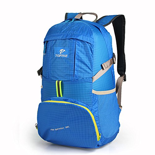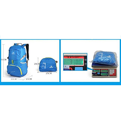 Specification: Material: Nylon fabric Zipper material: SBS Weight:11 OZ Color: Blue Capacity:35 L Folded Size:7.9 x 9.8 inches Unfold size:20.1 x 12.2 x 8.3 inches