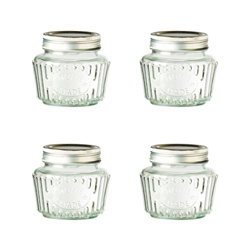 Amici Home, A7CR100S4R, Homemade Relief Glass Jar, Metal Twist Top, Dishwasher Safe (Glass Only), Set of 4, 10 Ounces, Small