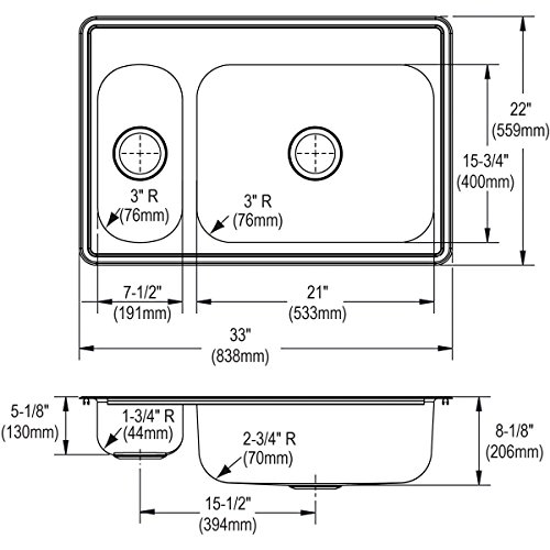 Dayton DSEMR233223 30/70 Double Bowl Top Mount Stainless Steel Sink