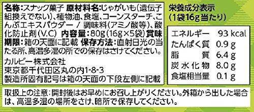 原材料:じゃがいも(遺伝子組換えでない)、植物油、食塩、コーンスターチ、こんぶエキスパウダー/調味料(アミノ酸等)、酸化防止剤(V.C)