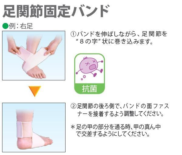フィギュアエイトの効果を応用した足関節固定帯です。適度な伸縮性で距骨の動揺を制限し、安定した圧迫固定ができます。左右兼用で、面ファスナー接着により着脱も簡単に行えます。抗菌加工済。 |