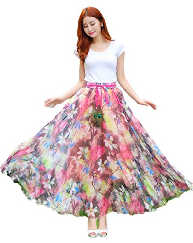 -. Title : 春夏 スカート 花柄 プリント ビーチドレス リゾート シフォン ボヘミア 大花柄 ふんわり かわいい スウィングスカート フレアスカート ウエストゴム マキシ丈 ロング ワンピース K7462