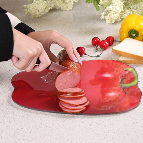 Multi-functional Tempered Glass Cutting Chopping Board Kitchen Surface Chef Board 10"x 11.5" 26x29cm Capsicum