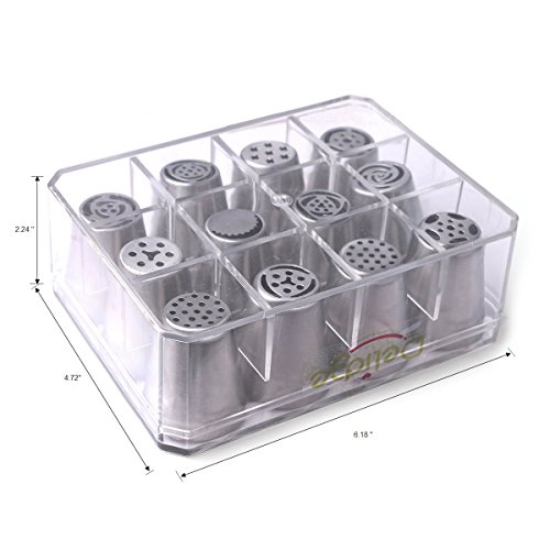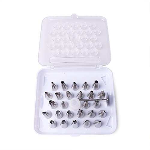 -. Feature : VERSATILE CHOICES: 52 various stainless steel decorating tips for your different bake needs, plus 1 flower nails and standard coupler. With this box, you can make lots of cookie shapes for all your family members, including kids, mummy and cute pets / BEAUTIFUL DECORATIVE SHAPES: With the nozzles, you can easily create swirls, rosettes, flowers, roping, stars, leaves and more designs, using imagination and creative ability to make your favorite cream styles / SIZE:8.27*6.89*1.4 inches, one plastic decoration tool box included / SUPERIOR QUALITY: All the nozzles are made of 303 stainless steel, which promises you a longer term usage time / Free Lifetime Guarantee: We are so confident to our icing tips, Amazon service is good enough, but ours is even better, If you have any unhappy purchase experience, we will give you full refund with no question asked for all the lifetime use. So click the ADD TO CART Button now