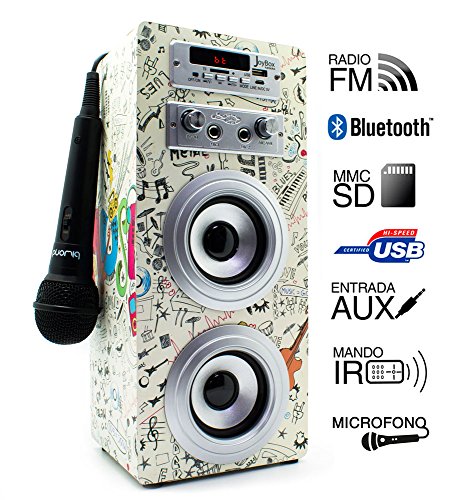 [Inhalt des Pack]: Akku 1000mAh (Speicher)/Mikrofon/ausziehbarer Antenne/Kabel Audio & Ladestation/Fernbedienung/Bedienungsanleitung [Technische Daten]: Lautsprecher Leistung: 10W (5Wx2)/Frequenzgang: 20-20kHz/Signal-Verstarkung:80dB/Abmessungen: 10x 11.8x 30cm/Sprach-Assistent in Spanisch.