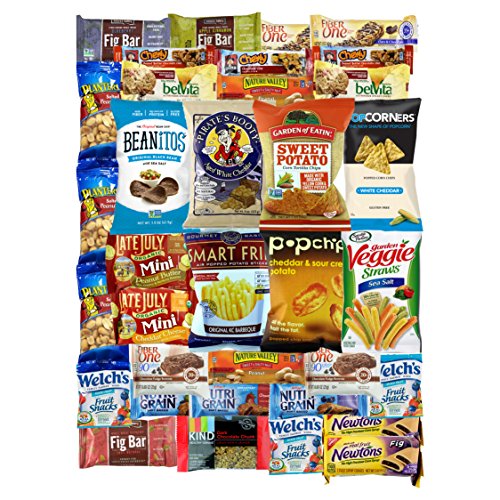 -. Feature : PREMIUM SNACKS: Variety Fun Premium Healthy Snacks Care Package Includes An Assortment Of 35 Delicious Individually Wrapped Single Serve Snacks. Find Your Favorite Treats & Try New Great Flavors. / GREAT VARIETY PACK TO SHARE: Share It In The Office With Your Coworkers, Mix It Up For School Lunches With Your Kids, Send A Care Package To Our Troops, Bring It To A Picnic Or A Party, Or Simply Share It With Your Family And Friends / PERFECT GIFT TO SEND: Perfect Care Package Gift To Send To Your Friends & Family Filled With Healthy & Great Tasting Snacks In A Beautiful Variety Fun Gift Box / All Snacks Are Carefully Handpicked & Shipped Loose In A Variety Fun Gift Box (Not In Manufacturers Packaging) In Rare Cases, Based Upon Availability Certain Flavors Will Be Replaced With Other Flavors / BUNDLE INCLUDES: 1 Pirates Booty (0.5 oz), 2 Late July Organic Crackers (1.125 oz), 1 Smart Fries (1 oz), 1 Popchips (0.8 oz), 1 Veggie Straws (1 oz), 1 Kettle Chips (0.8 oz), 3 Welches (0.8 oz), 3 Nutri Grain (1.3 oz), 3 Quaker Chewy Bars (0.84 oz), 3 Planters Peanuts (1 oz), 2 Nature Valley Sweet & Salty (1.2 oz), 2 Belvita (1.76 oz), 2 Fiber One Brownie (0.9 oz), 1 Popcorners (1.1 oz), 1 Garden Of Eatin (1 oz), 2 Fiber One Bars (1.4 oz), 3 Fig Bars (2 oz), 1 Kind Granola (1.2 oz) & 2 Fig Newton (2 oz), Includes Exclusive Simple Recipes With Chips Recipe Booklet By Variety Fun