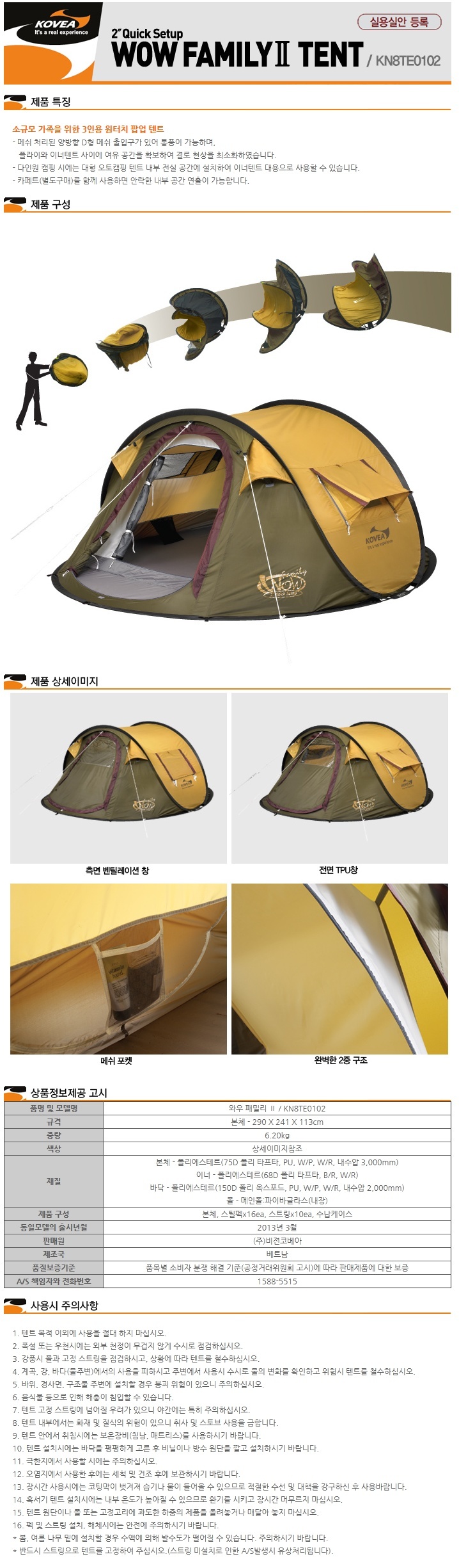 [Kovea] wow family tent 2 / KN8TE0102 / 3-4 people / auto tent