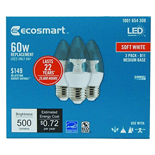 60W Equivalent Soft White B11 Dimmable LED Light Bulb (3 Pack) 1001654308
