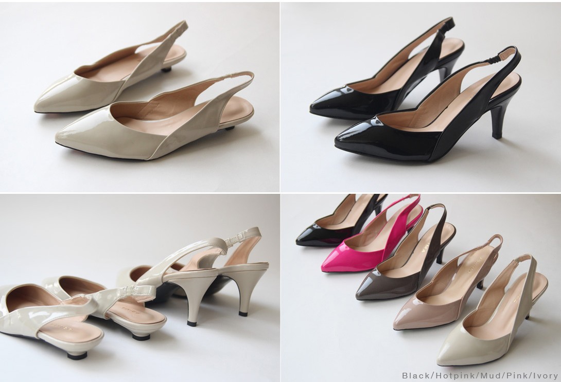 レディースファッションの婦人靴(レディースシューズ)の分野でパンプスは代表的なカテゴリー。スニーカー、ミュール、サンダルなど数かあるレディスファッションシューズの中でも最もスタンダードな種類で痛くないフラット(ぺたんこ)やピンヒール、ローヒール、オープントゥ、ストラップ、太ヒール、厚底、ポインテッドトゥ、バイカラー、リボン付きや、ひょう柄、メッシュなど種類や形状も多く存在し最も女性らしさを引き立て世界で多くの女性に愛されています。