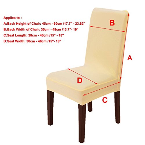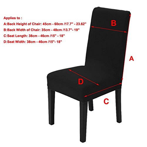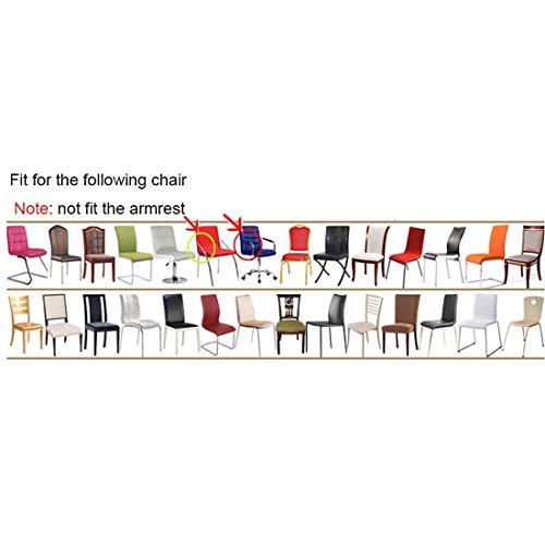 -. Feature : ★ Versatile Fit: This is a general type of chair cover, can fit most home dining chairs, and the installation is very simple. For most of the chair, you can make your chair a new look, make the home more beautiful / ★ Anti-dust & Anti-wrinkle: Keep your chair from stains and spills to offer you an enjoyable dining experience; Stretchable material, it is soft, comfortable and wrinkle resistant. Fully machine washable for easy care / ★ Beautify Your Chair and Home: This cover can add elegance to any dining room, and make furniture look brand-new, giving a snug fit on the chair, also giving a neat look to the furniture / ★ Applies to Chair Size : Back Height of Chair: 45cm - 60cm /17.72 inches (Approx.); Back Width of Chair: 35cm - 48cm /13.78 inches- 18.9 inches(Approx.); Seat Length: 38cm - 46cm /14.96 inches - 18.11inches (Approx.); Seat Width: 38cm - 46cm /14.96 inches - 18.11inches (Approx.). NOT FIT THE ARMREST / ★ Occasions: Can be used for hotel, wedding banquet, dinner, party, office, celebration, ceremony, family dining room decoration, etc.