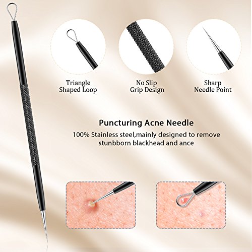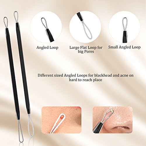 - 【6-IN-1 USEFUL SKIN CARE KIT】: 6PCS blackhead remover tools with different size and angles for treatment different types facial blemishes, blackhead, acne, comedone, zit, pimple easily.