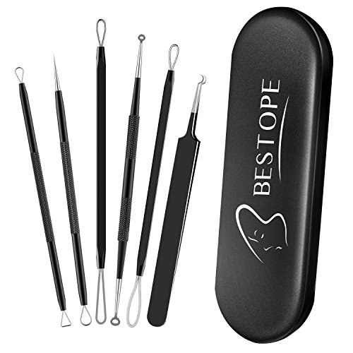 BESTOPE Blackhead Remover 6PCs Pimple Extractor Tweezer Tool, reatment for Blemish, Whitehead Popping, Zit Removing for Risk Free Nose Face Skin with Metal Case