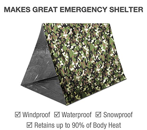 EMERGENCY USE - Designed to retain up 90% of your body heat, our blankets can help block rain, snow, and moisture to keep you dry in damp, wet, cold, rainy environments. In fact, uses are nearly limitless: use as tent footprint, backpack cover, rain poncho, emergency signal, solar oven, shade cover, fishing lure, bird repellent, emergency shelter, sleeping bag liner, ground cover, bivouac sack, wind blocker, arm sling, tourniquet, bivvy, trail marker, water collector, snow melt container.
