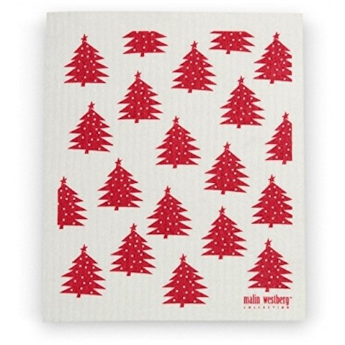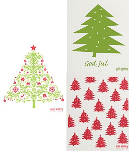 Swedish Dishcloth - Set of 3 (GR) Christmas HOLIDAY Trees in GREEN & RED