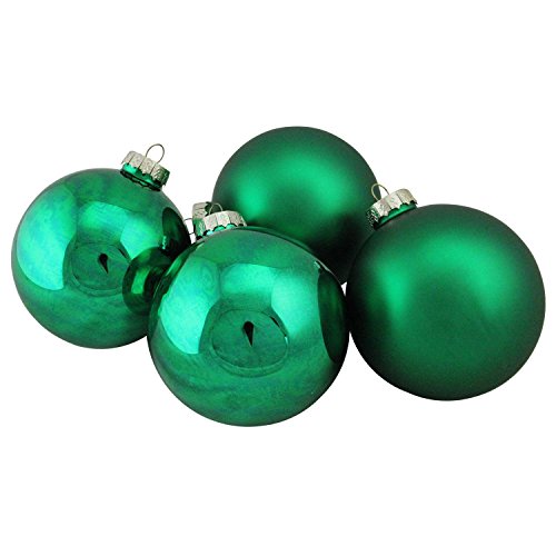 NORTHLIGHT WY00772 Green Glass Ball Christmas Ornament Set, 4"