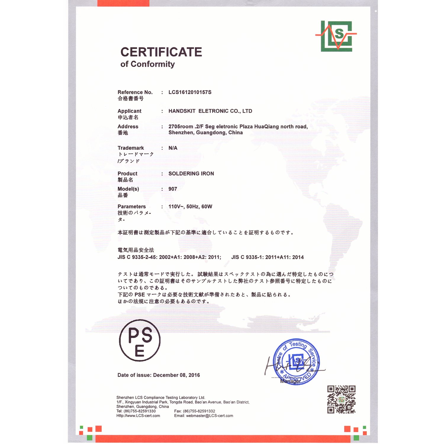 Product information: