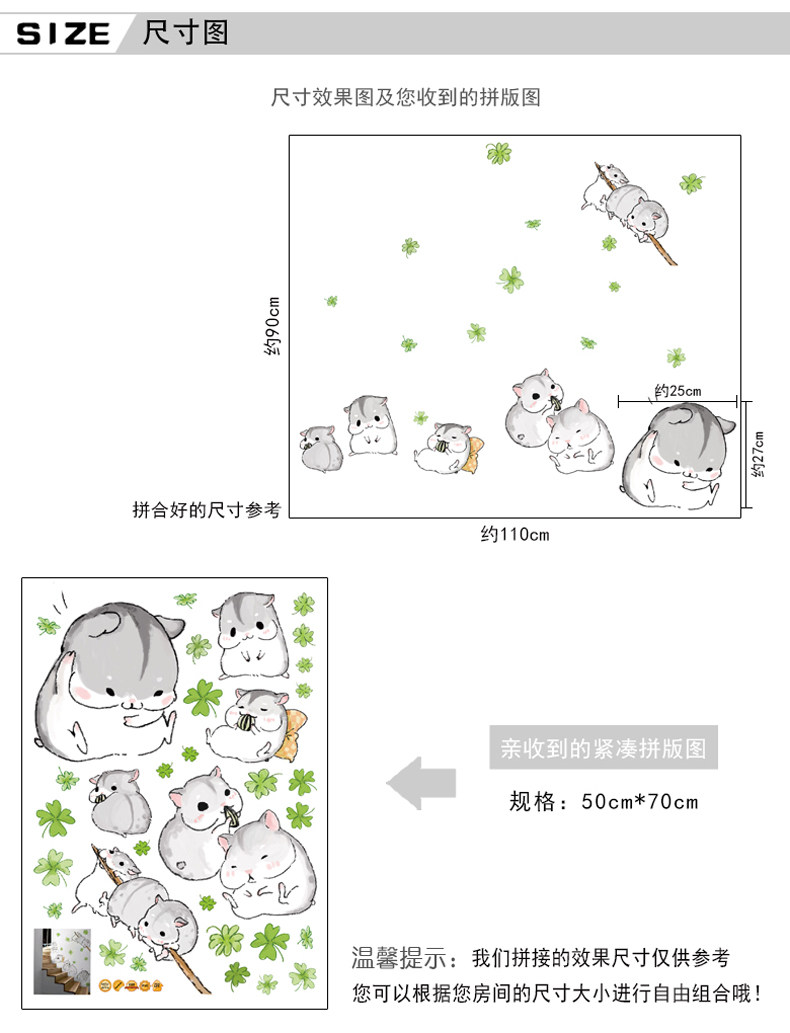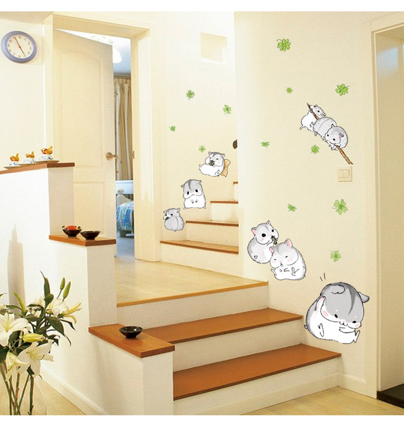 小仓鼠 可移除墙贴纸客厅电视墙贴纸卧室浪漫儿童房创意家装饰品