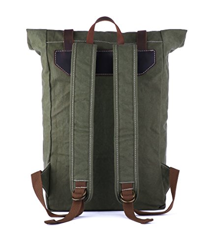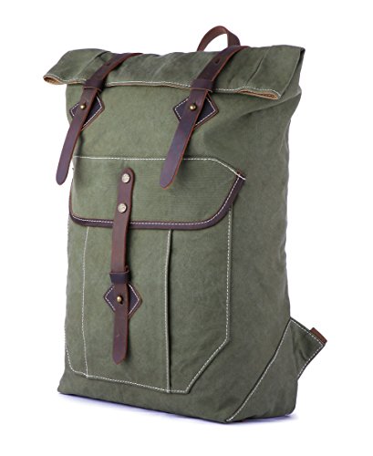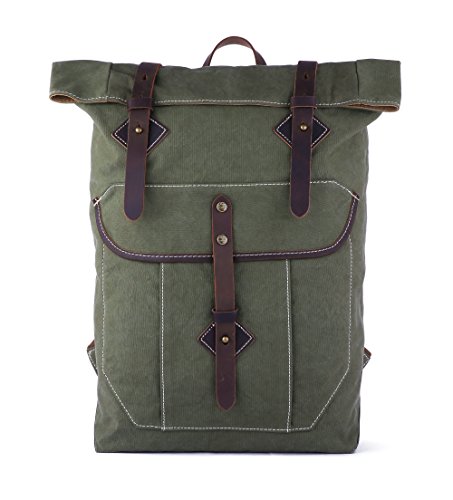 Features: Roll-top design and fine crazy horse leather trim with nipple nail closure make this classic canvas rucksack look much more exquisite and fashionable.