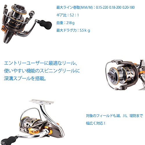 최대 라인 권취(MM/M):0.15-220 0.18-200 0.20-180 기어비:5.2:1 최대 드래그력:5.5kg 볼/롤러 베어링:12+1