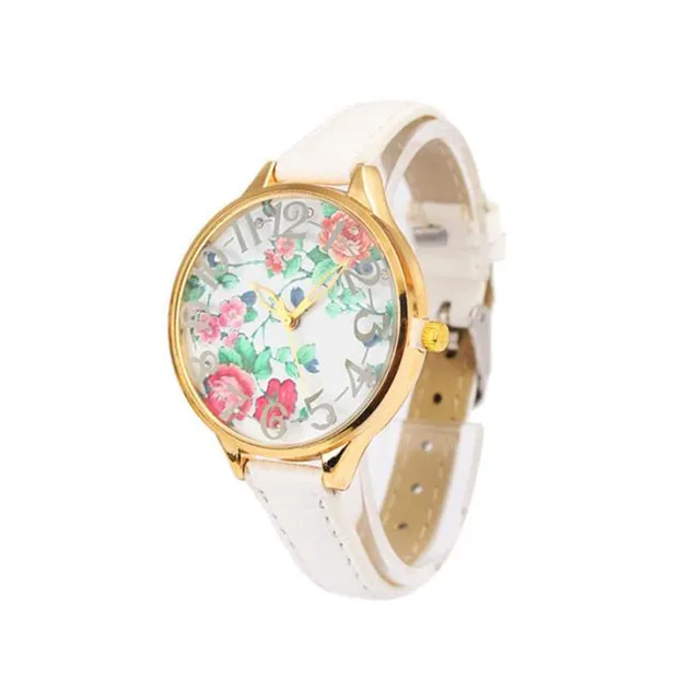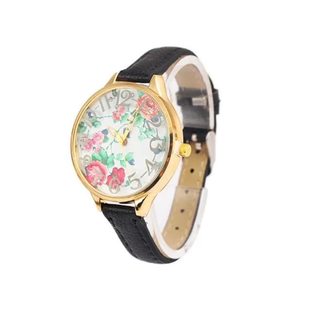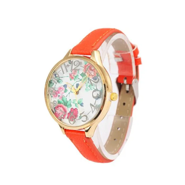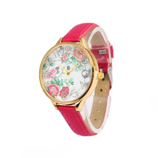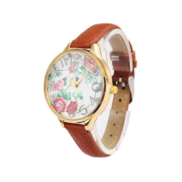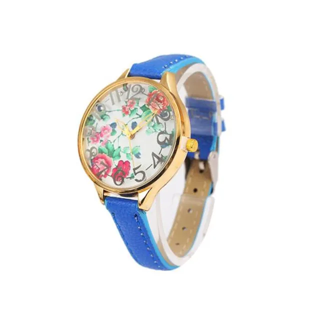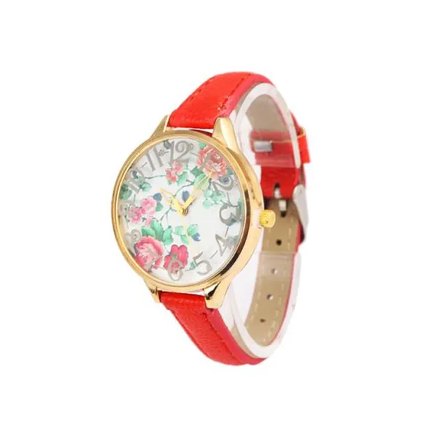 높은 품질의 꽃 여성 여성 빈티지 장미 인쇄 드레스 팔찌 시계