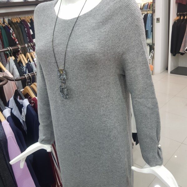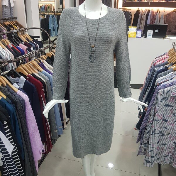 소매에 진주단추를 포인트 주고 캐시미어가 혼방된 고급소재의 무봉제 홀가먼트 원피스