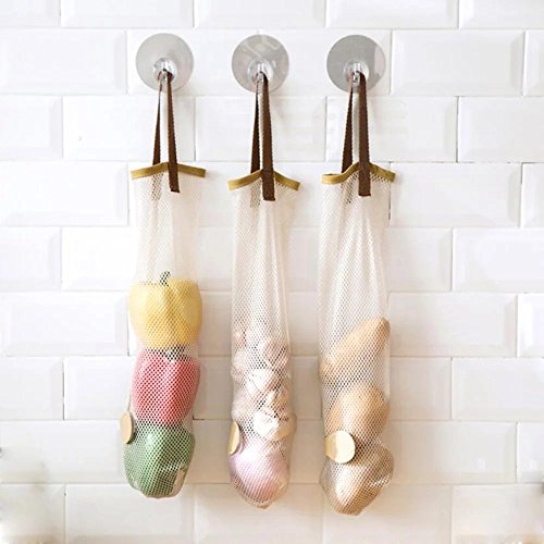 Oneyongs Hanging Resuable Grocery Bag Storage Mesh Bag for Potato Onions Green Pepper Fruits Garlic Garbage Pack of 3