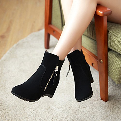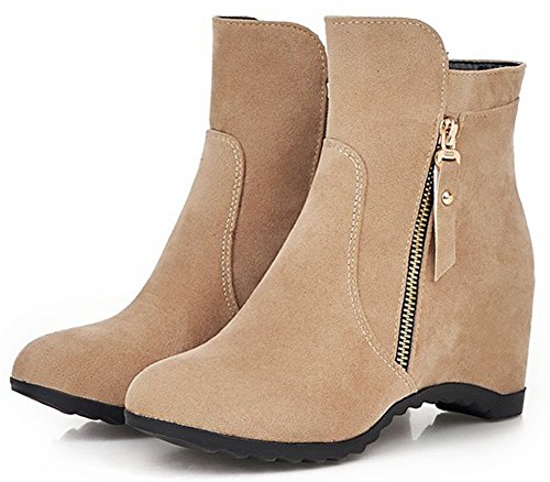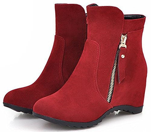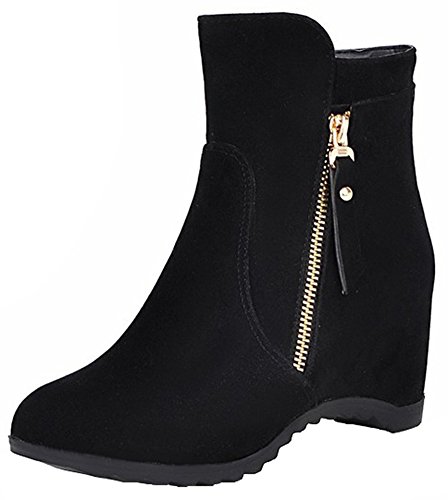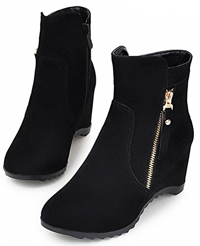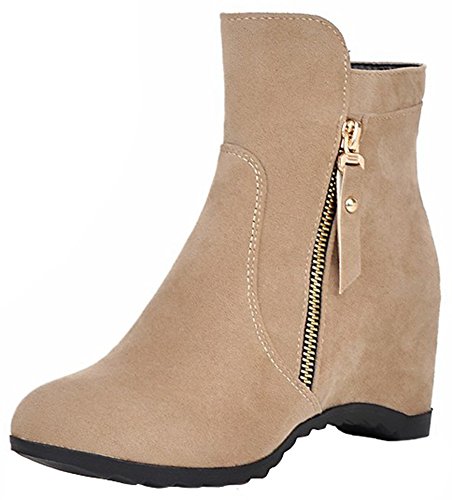 (Mofri)/Women's/Boots/DIRECT FROM USA/Mofri Women's Trendy Invisible Wedge Medium Heel Ankle Booties Round Toe Faux Suede Side Zipper...
