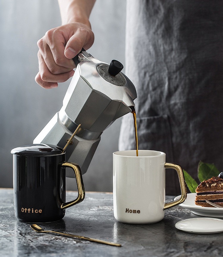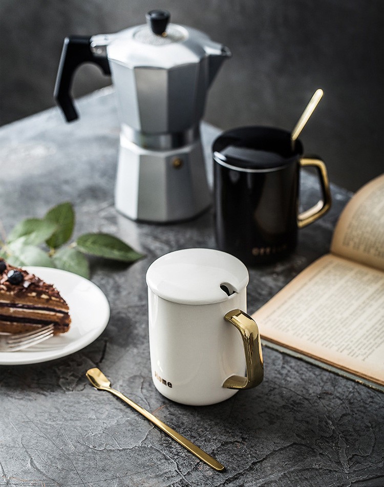 マグカップ コーヒーカップ おしゃれ スプーン付き 金めっき 通勤 オフィス 400ml まぐかっぷ 無地 プレゼント 人気  サイズ:8*10.5cm容量:400ml