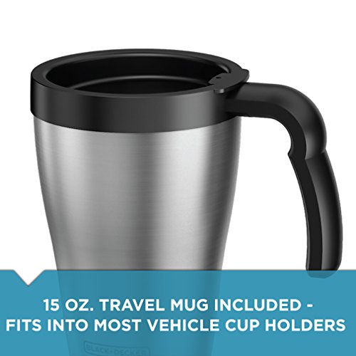 Travel Mug Included - The 15-oz. stainless steel travel mug is perfect for taking your daily cup of joe on the run, it fits snugly in most car cup holders