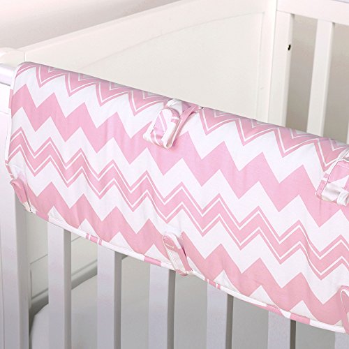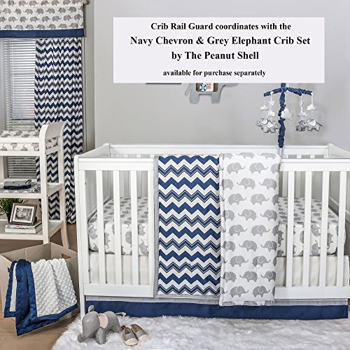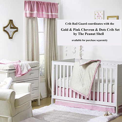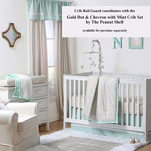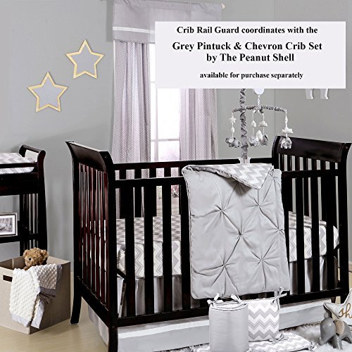 -. Binding : Baby Product -. Brand : The Peanut Shell -. Feature : Crib rail guard protects your teething baby from harmful toxins while keeping the crib looking as good as new, free of teeth marks and drool discoloration / The soft, padded rail-guard securely and easily attaches to the crib with five hook and loop tabs / Features three loops to attach baby's favorite toys to play with while awake / Measures 50.25 by 17.5 inches to fit the long side of most cribs; made from 100% cotton sateen fabric; 100% polyester fill; machine wash and dry / Coordinating crib bedding and nursery decorating accessories are available from The Peanut Shell to create your perfect nursery -. Label : Farallon Brands -. Manufacturer : Farallon Brands -. ProductGroup : Baby Product -. ProductTypeName : BABY_PRODUCT -. Publisher : Farallon Brands -. Studio : Farallon Brands -. Title : Zig Zag P.R.Int 100% Cotton Padded Crib Rail Guard by The Peanut Shell