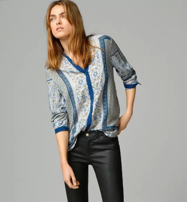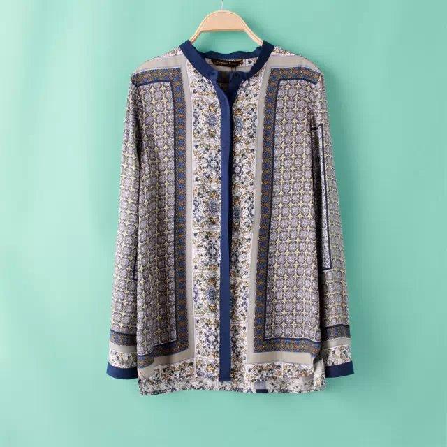 Women Clothing New Fashion Full Sleeve Casual Blouse Single Breasted Women Tops Geometric Print All-Matched Women Blouses