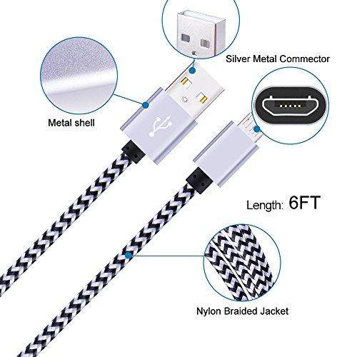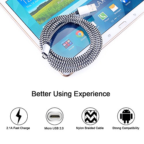 Android Charging Cable, CIQILY 3Pack 6FT Braided Nylon Cable Micro USB 2.0 Charge Cable Sync Charging Cord for Samsung Galaxy S7 Edge/S6/S4, Note 5/4, HTC, Google, Nexus, Sony, Nokia, LG, MP3, Tablet