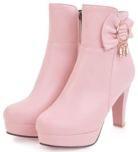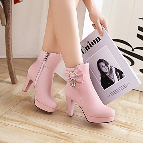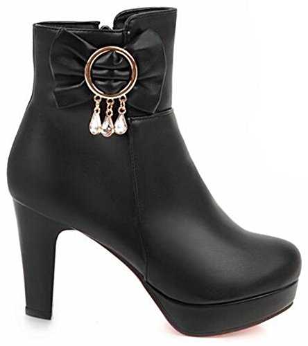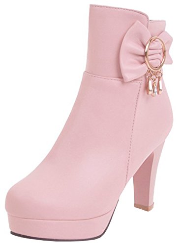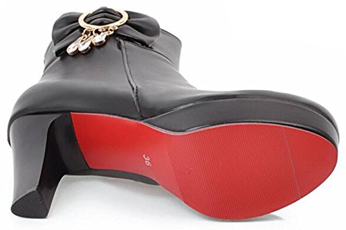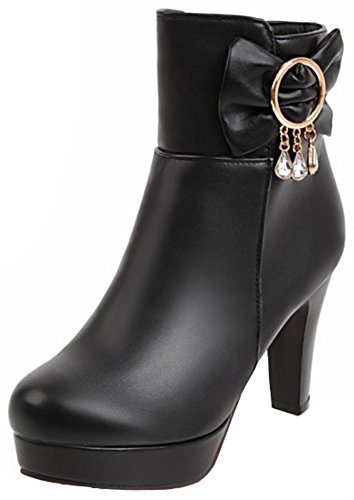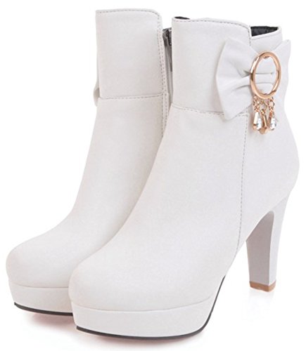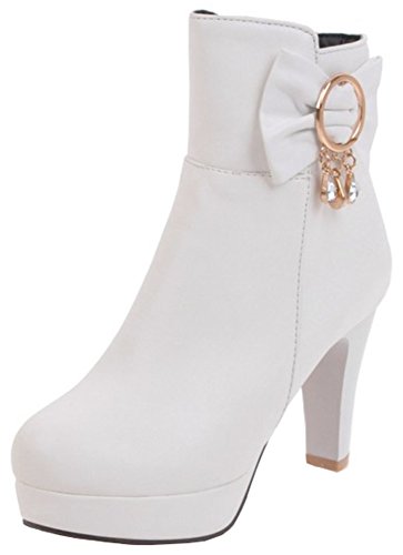 (Mofri)/Women's/Boots/DIRECT FROM USA/Mofri Women's Sweet Bow Rhinestone Chunky High Heel Platform Bridal Ankle Booties Round Toe Sid...