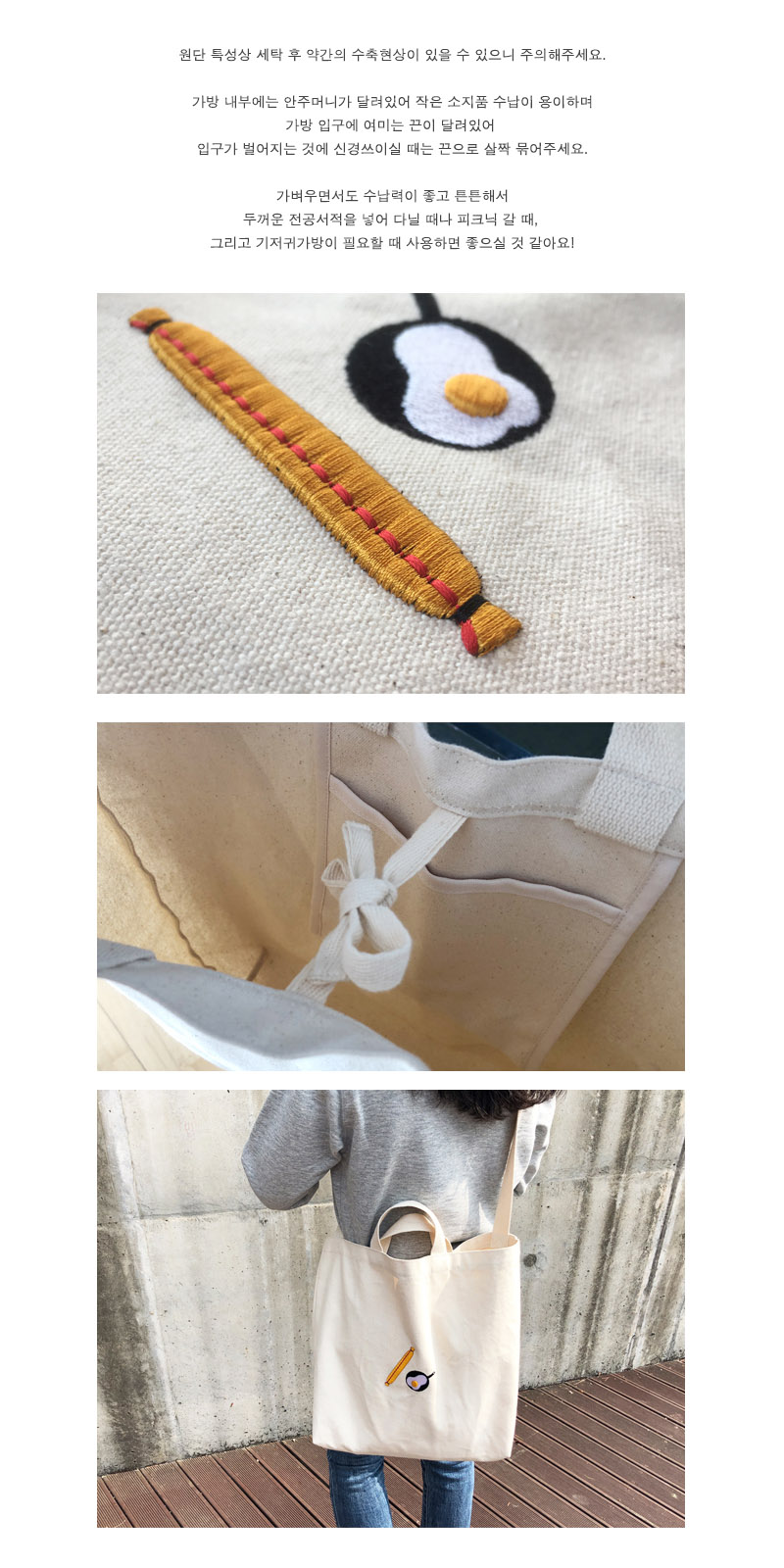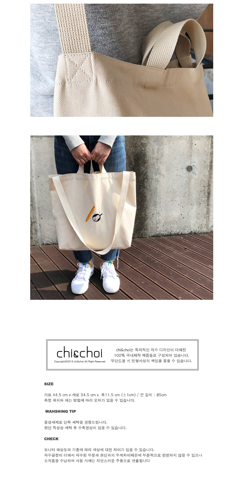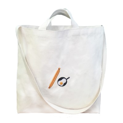 수납이 넉넉한 크로스백입니다. 탄탄하게 마감하였고 가방앞면에 소세지와 계란후라이가 볼륨감있게 수 놓아져 있습니다 :)