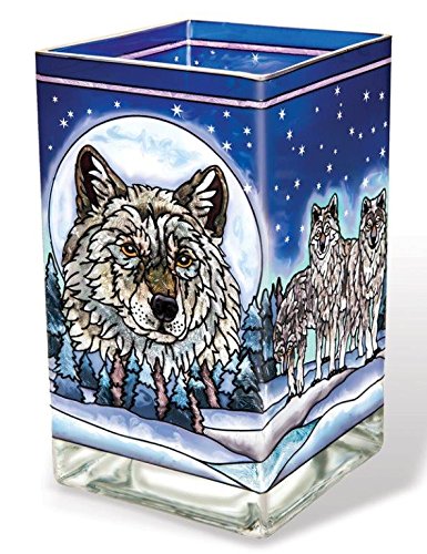 Amia 41730 Hand-Painted Glass Large Circle Suncatcher, Wolf Pack Design, 6-1/2-Inch