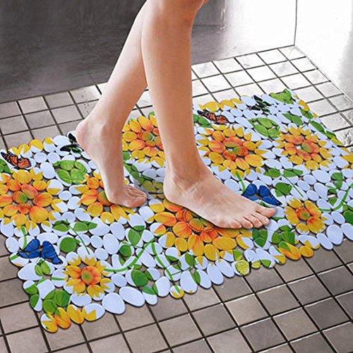 -. Title : Alicemall Unique Pretty Yellow Sunflower Red Rose Flower P.R.Int Skid-Resistant PVC Bath Mats 14" x 28" Massage Shower Stall Mats