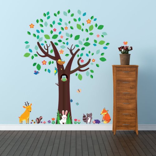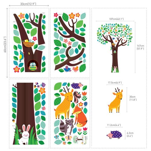 -. Title : Decowall, DM-1312, Big Tree and Animal Friends Wall Stickers