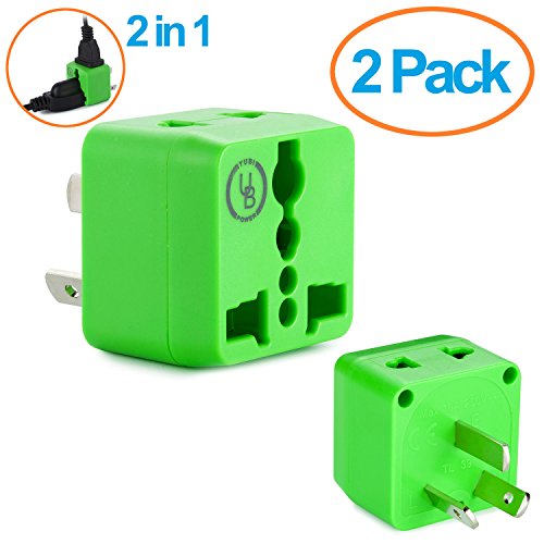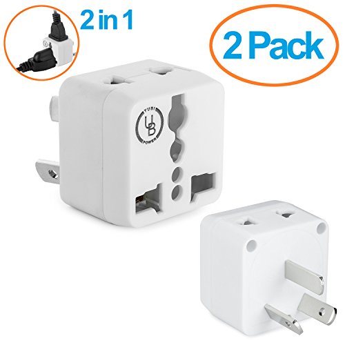 Yubi Power 2 in 1 Universal Travel Adapter with 2 Universal Outlets - Built in Surge Protector - Black - 2 Pack -Plug Type I works with: American Samoa / Argentina / Australia / Burma (officially Myanmar) / China / Cocos (Keeling) Islands / Cook Islands / East Timor (Timor-Leste) / Fiji / Kiribati / Nauru / New Zealand / Niue / Norfolk Island / Papua New Guinea / Pitcairn Islands / Samoa / Solomon Islands / Tokelau / Tonga / Tuvalu / Vanuatu