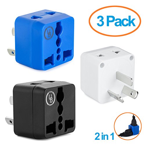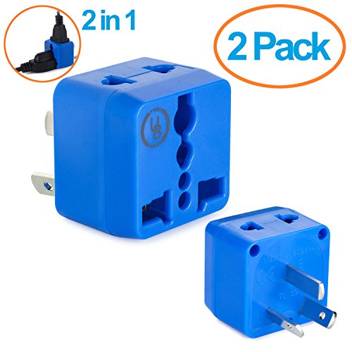 2 Pack | Perfect travel adapter with 2 universal outlets (2 prong & 3 prong)