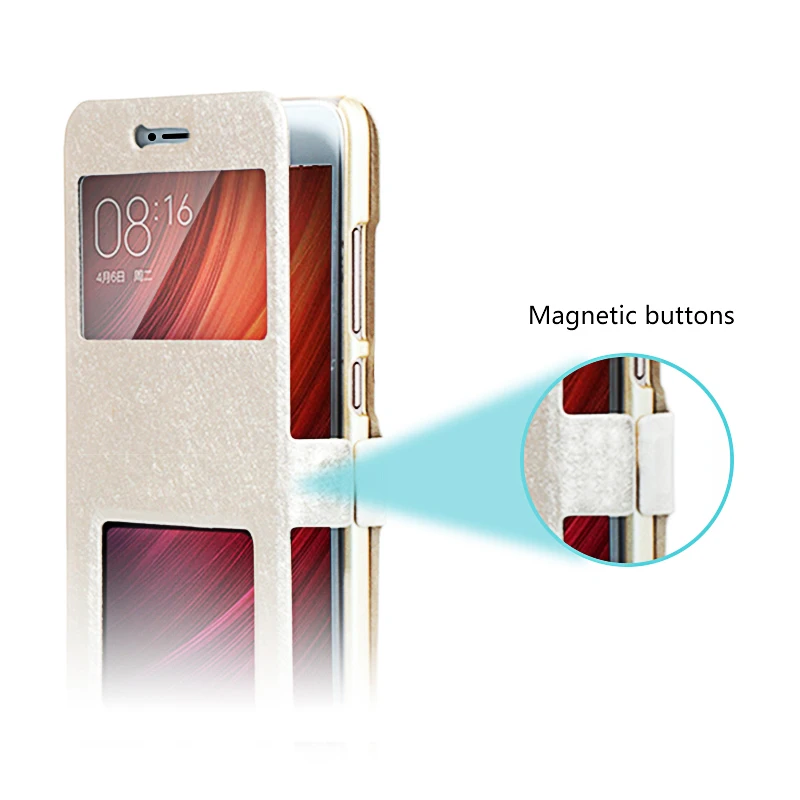 Flip Phone Cover for Xiaomi Redmi 4X:Luxury Window View Phone Case Shell Capa for Redmi 3S 3Pro 3X