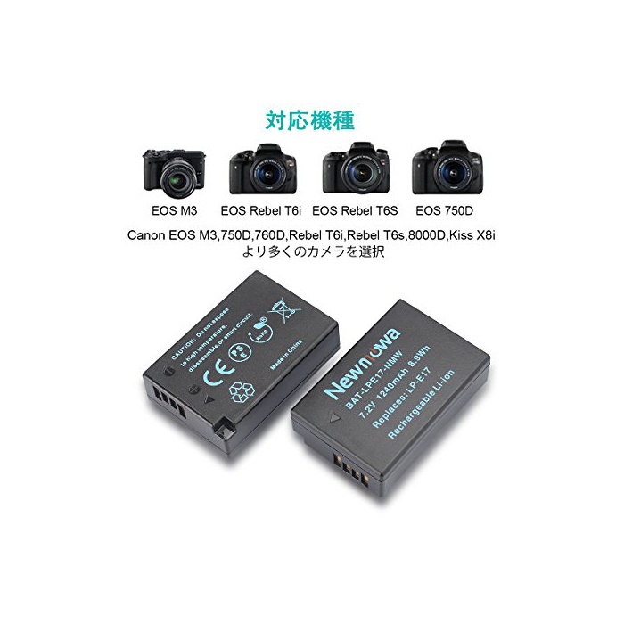 원본상품명: Newmowa LP-E17 互換バッテリ 2個+充電器 機種 Canon LP-E17 Canon EOS M3 M5 750D 760D Rebel T6i T6s 8000D 9000D