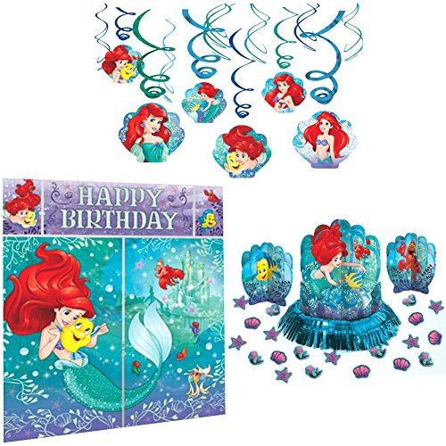 -. Feature : Includes - Scene Setter Wall Decoration, Hanging Swirl Decorations, and Table Decorating Kit / 1 - Little Mermaid Scene Setter Ariel Wall Decoration / 12 - Little Mermaid Hanging Swirl Decorations / 1 - Little Mermaid Table Decorating Kit (1-12" Centerpieces, 2-7" Centerpieces, and Paper Cutout Confetti)