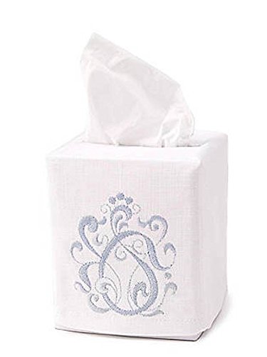 Jacaranda Living Linen/Cotton Tissue Box Cover, English Scroll, Duck Egg Blue
