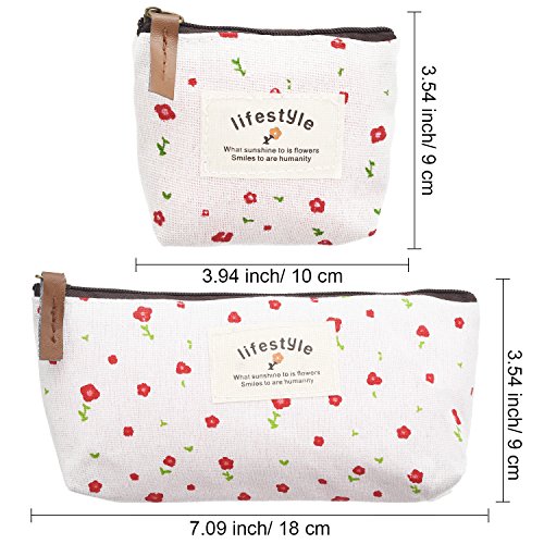TecUnite 6 Pieces Pencil Bag Pen Case Flower Floral Canvas Pencil Pen Case Multi-functional Cosmetic Makeup Bag Set Coin Purse