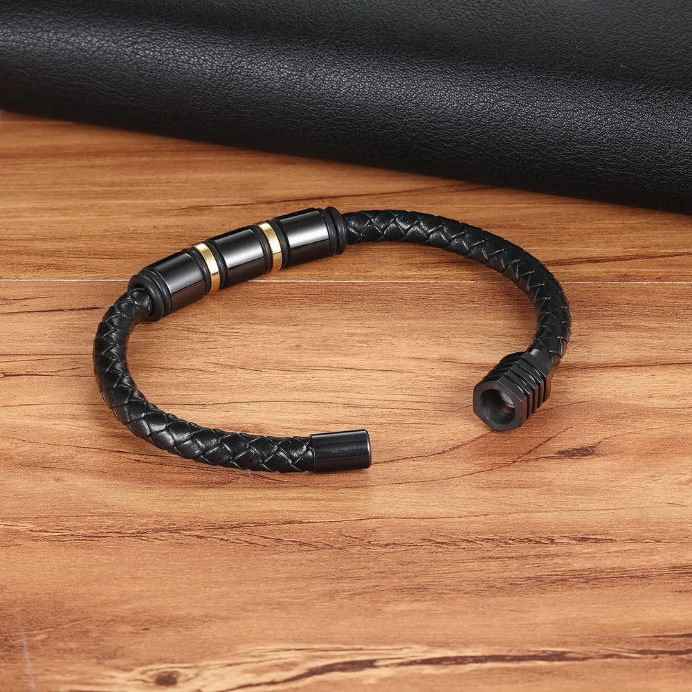 Name:Stainless Steel Magnetic Buckle Charm Men Leather Bracelet