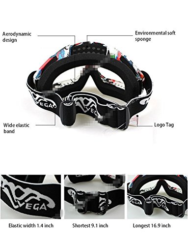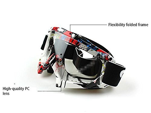 -. Feature : Classic,medium-to-large-fit goggle offers throwback styling with an advanced lens technology for excellent optical clarity and fog-free performance.This versatile lens is ideal in both fairly sunny and overcast conditions.100% UVA/UVB protective outer layer,and anti-fog and scratch / Spherical PC lens,soft lens material, hard twist deformation will not cause any harm to the lens,it wil not break.To ensure that when the lens receive strike will not harm the face. / Advanced Lens technology and Aerodynamic Design designed to Prevent Fog and UV400, Eliminate Wind, Sandproof . Perfect protection for safe and healthy eyes. / The multi-faceted holes,there are ventilation openings along the up and down of frame are set to facilitate the flow of air to be discharged from the facial skin heat scattered outside,can ensure the mirror has a good visual effects. / Suitable for multipurpose usage: Cross-country vehicle, Motorcycle, Skiing, Outside sports, kite surfing, jet skiing, airsoft, paintball and so on.