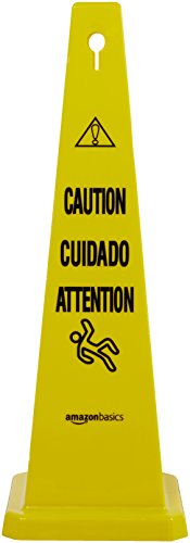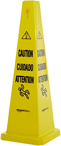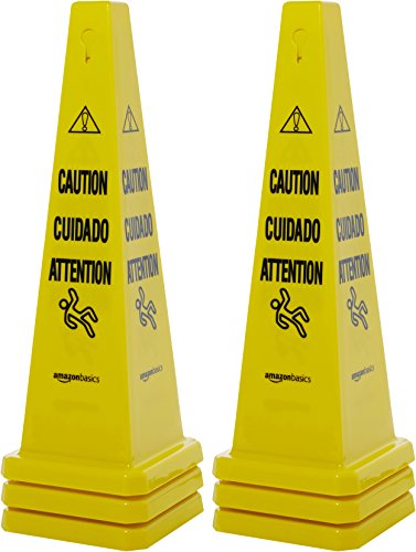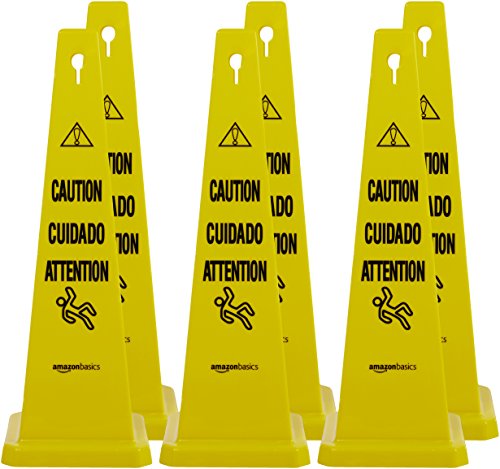 AmazonBasics Floor Safety Cone, 25-3/4-Inch - Caution, Multilingual - 6-Pack