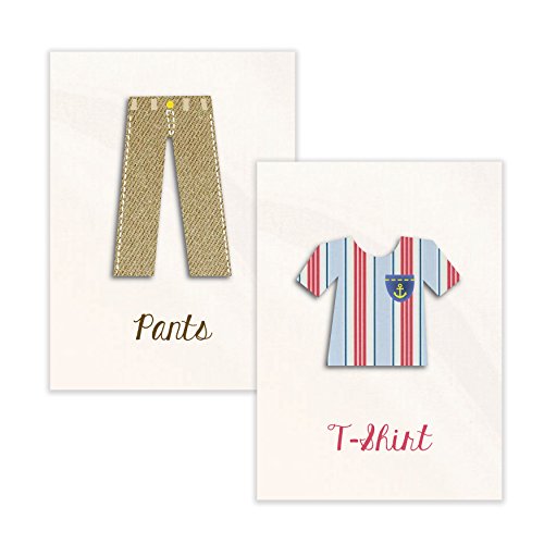What better way to teach your little one the clothes they are wearing than with our adorable Clothes Themed Wall Cards. These beautiful wall cards with adorable clothes imagery are the perfect educational and environmental addition to your child's room. This gender neutral, and originally created from scrap papers, our art is a perfect design for both boys and girls. Eco-friendly packaging complements the eco-friendly imagery. Your child will grow, just like nature does- steady and brilliant. Frame them, string on a line or tack to the wall, each set of cards are wrapped in biodegradable cell package.Feature