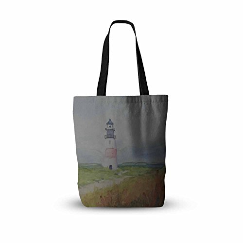 KESS InHouse Cyndi Steen "Sankaty Lighthouse" Blue Green Everything Tote Bag, 18" x 18", Multicolor